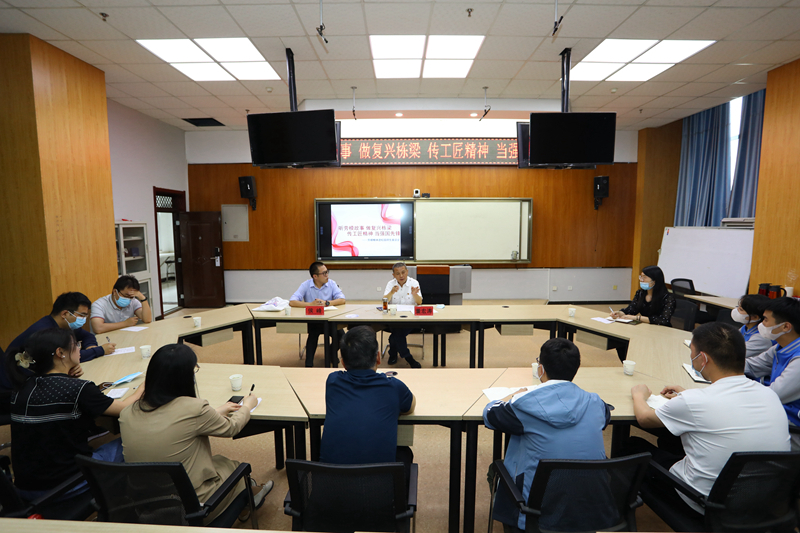 座谈会在高新校区北三楼会议室召开,车绪武主持会议,焦胜军致辞。他介绍了学校办学特色和取得成绩,并结合习近平总书记在致首届大国工匠创新交流大会的贺信中的讲话精神强调了大力弘扬劳模精神、劳动精神、工匠精神的重要意义,同时介绍到,学校办学以来,高度重视学生劳动教育,将劳动教育融入人才培养全过程,不断创新劳动教育形式,切实发挥劳动教育的实践育人功能。学校把技能竞赛作为学生练本领、强素质的重要途径和方式,连续举办16届“技能大赛月”活动,形成了专业全覆盖、师生全参与的技能竞赛格局,已成为弘扬和培育工匠精神的重要平台,“榜样引领学技能、切磋交流共提升”的技能文化蔚然成风。焦胜军表示,学校将不断加强教育教学改革,深化产教融合、校企合作、工学结合、知行合一,大力弘扬劳模精神、劳动精神、工匠精神,全面提升学生综合素质,更好服务经济社会发展,为实现中华民族伟大复兴贡献陕铁力量。