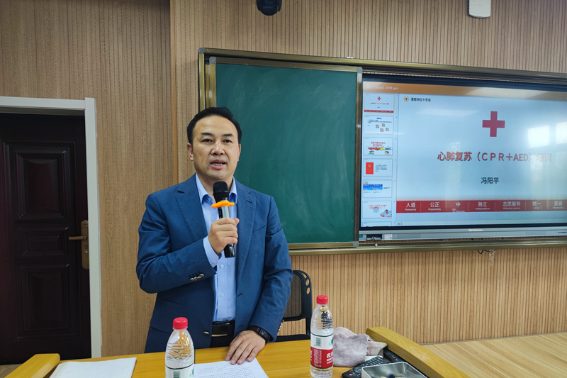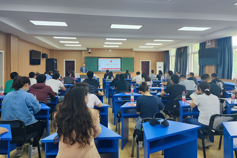 为深入推进健康校园、平安校园和幸福校园建设,增强全校师生安全与急救意识,掌握基本的急救技能与流程,5月18日,学校邀请渭南市红十字会救护专家来校,为各部门老师、医务人员进行应急救护技术培训工作。副校长贺建锋出席首期应急救护培训班开班仪式并讲话。来自学校各部门的50名老师参加了首期专题培训。