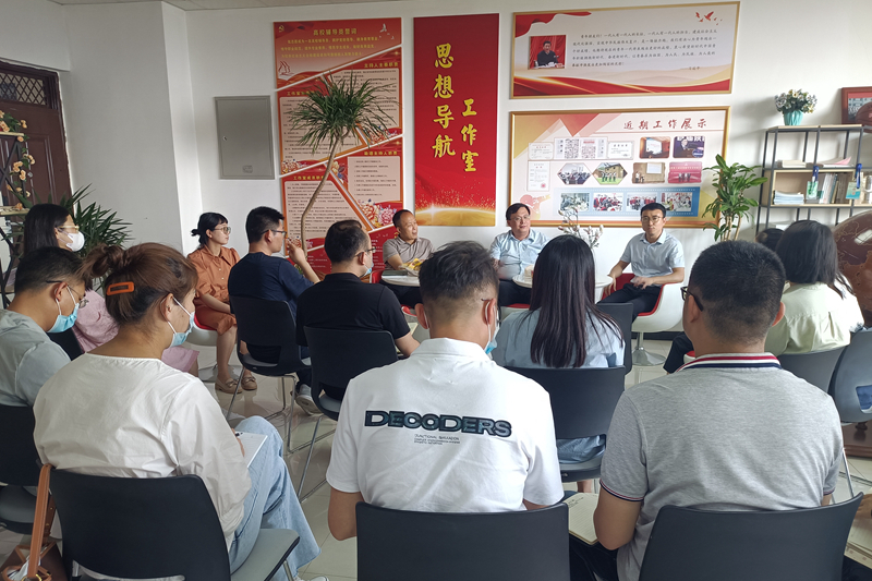 随后,李萌来到思想导航辅导员工作室参观交流指导工作,工作室全体成员参加交流会。主持人李昌锋介绍了工作室的基本情况及未来发展愿景,双方就工作室未来发展方向、实践育人及硬件建设等问题进行深入交流,并在多个方面达成共识,为工作室下一阶段发展确立目标、指明方向、注入动力。