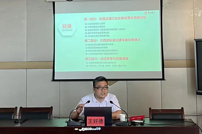 6月10日下午,学校在12楼会议室召开大西安轨道交通列车车辆发展与研讨报告会。西安市轨道交通集团有限公司高级工程师、技术中心车辆室副主任王好德应邀来校为师生作报告。学校副校长贺建锋、铁道动力学院全体教职工及城市轨道车辆应用技术专业学生参加会议。