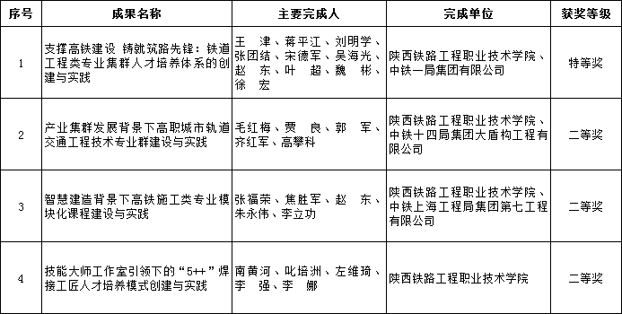 陕西省2021年高等教育教学成果奖陕铁院获奖名单
