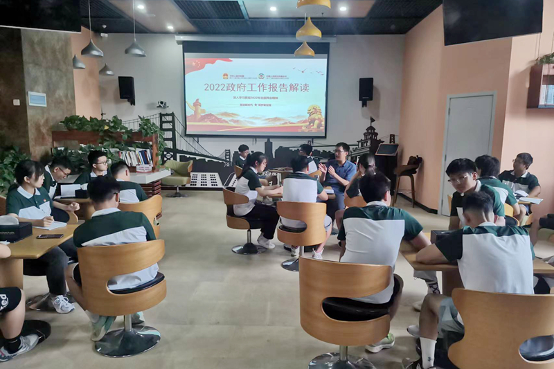 6月20日下午,副校长蒋平江在高新校区教师沙龙中心为城轨学院部分学生作题为“学习两会精神—2022年全国两会政府工作报告解读”的形势与政策报告。