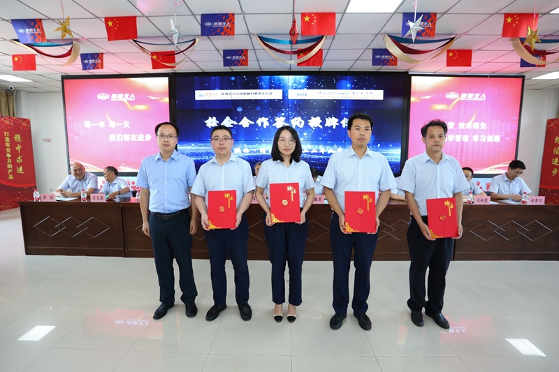 陕西北人印刷机械有限责任公司党委副书记(代总经理)王永周、副总经理惠晓牢、总工程师李征、副总工程师(纪委书记)习大润等主要领导及中层干部出席了会议。双方领导就校企合作、产教融合、人才共育、合作创新等事宜进行了深入交流。在签约授牌仪式上签订了战略合作协议、互授了基地牌匾、开展了人员互聘。
