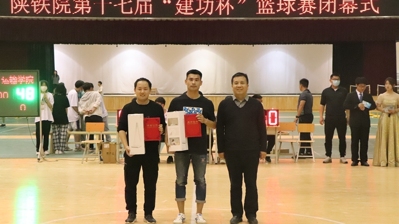 近日,由学工部、体育教学部、校团委联合举办的陕铁院第十七届“建功杯”篮球赛总决赛暨闭幕式在学校高新校区文体中心圆满落幕。学校校长焦胜军,副校长贺建锋、祝和意,学工部、体育教学部、发展规划处、纪委综合室、马克思主义学院、测绘与检测学院、铁道运输学院、校团委等相关部门负责同志共同见证了冠军队伍的诞生。