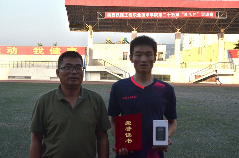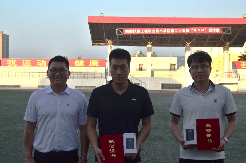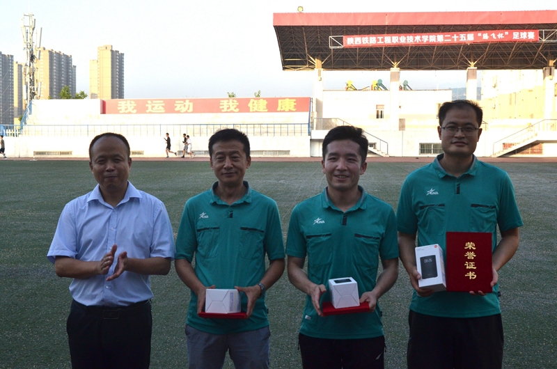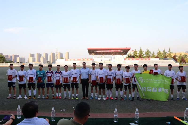 6月10日,在学校临渭校区的绿茵场上,随着裁判员终场哨声的响起,学校第二十五届“腾飞杯”足球赛决赛落下帷幕。铁道装备制造学院代表队在比赛中先失一球,后奋起直追连续攻入三球,以3:1战胜测绘与检测学院代表队,摘得桂冠,测绘与检测学院代表队获得亚军。随着闭幕式的颁奖仪式,历时一个月的陕铁院第二十五届“腾飞杯”足球赛圆满结束。