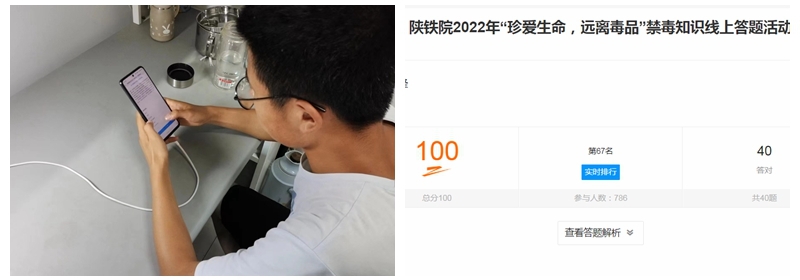 ——开展一次网上禁毒知识答题活动。根据上级文件安排部署,结合学校疫情防控实际,学校安保处联合信息化与网络安全处开展了主题为“珍爱生命,远离毒品”的禁毒知识线上答题活动,题目内容涵盖毒品种类、特性和危害,如何远离毒品侵害和禁毒法律法规等相关知识。活动于6月20日启动,6月26日结束,共计7天。此项活动的开展,进一步拓宽了禁毒宣传覆盖面,普及了禁毒知识和相关法律法规,增强了师生的法治意识和拒毒防毒禁毒意识。