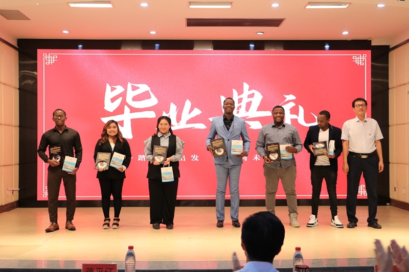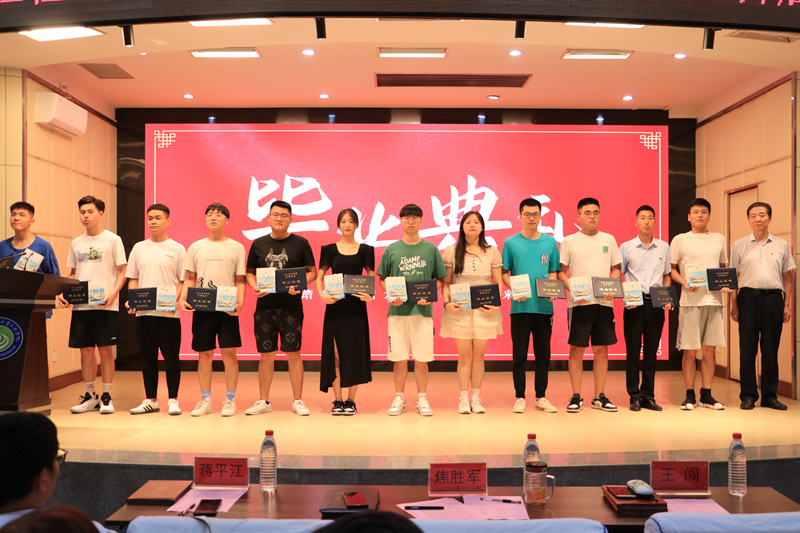 随后,曹喜龙处长为优秀毕业生颁发证书,刘明学处长为校友工作联络员颁发聘书,李兵方院长为李静同学颁发朱国宝爱心奖学金证书,蒋平江副校长为留学生颁发纪念品,焦胜军校长为毕业生代表颁发毕业证和纪念品。