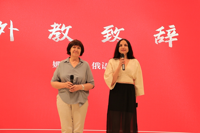俄语外教拉丽萨和娜斯佳老师寄语2022届毕业生,希望大家毕业后“能够不畏艰难的勇敢走下去”。张璇老师作为中方教师代表发言,寄语学生“不负春风,不负时光,做最美的奋斗者”。
