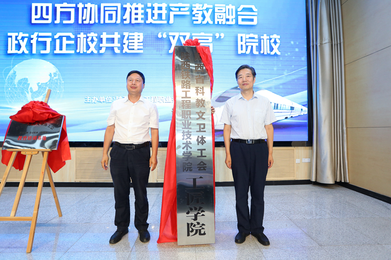 为进一步弘扬劳模精神、劳动精神和工匠精神,经陕西省教科文卫体工会批准,决定在学校挂牌成立“工匠学院”,同时将学校“窦铁成事迹展览馆”挂牌设立为陕西省教科文卫体工会干部职工“劳模精神、劳动精神、工匠精神”教育培训基地。会上,陕西省教科文卫体工会主席徐富权、学校校长焦胜军为工匠学院和教育基地揭牌。