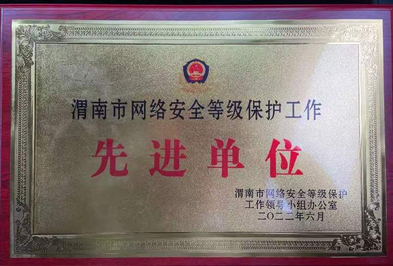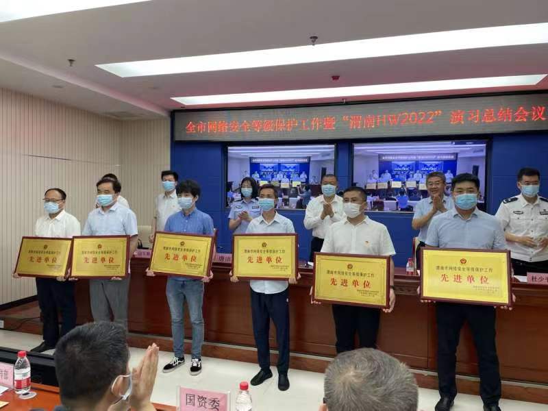 7月5号上午,渭南市网络安全等级保护工作暨渭南“HW2022”演习总结会议在渭南市公安局召开,渭南市副市长及50多家单位参加了会议。会议通报了2022年HW演习的情况,并宣读了渭南市网络安全等级保护工作中先进单位和先进个人的决定,学校荣获“全市网络安全等级保护工作先进集体”的荣誉,并进行了颁奖表彰。
