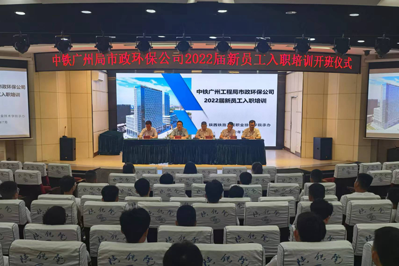 7月9日上午,中铁广州工程局市政环保公司2022届新员工入职培训开班仪式在学院临渭校区学术报告厅举行,学校副校长祝和意、公司副总经理蔡维刚、公司人力资源部部长李静出席,学校铁路培训学院相关人员和公司2022年新入职的60名学员参加。