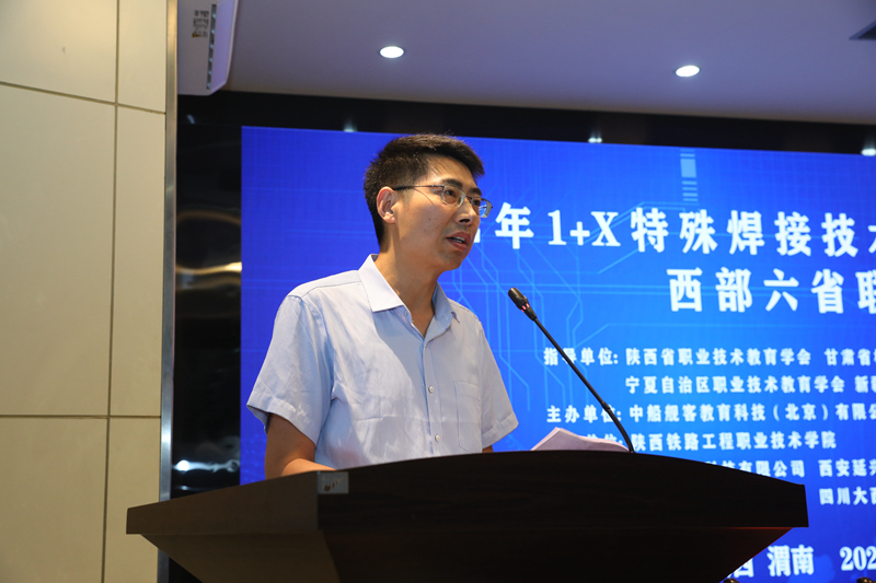 7月23日上午,由中船舰客教育科技(北京)有限公司主办,学校承办的“2022年1+X特殊焊接技术职业技能竞赛西部六省联赛”在临渭校区举行,陕西省教育科学研究院高等教育与教育政策研究中心副主任郭为,中船舰客教育科技(北京)有限公司总经理助理李海霞,巴音郭楞职业技术学院党委副书记、院长古丽娜·肉孜,学校副校长蒋平江,西安市高陵区职业技术教育中心书记曹海平等领导出席开幕式。开幕式由铁道装备制造学院院长南黄河主持。