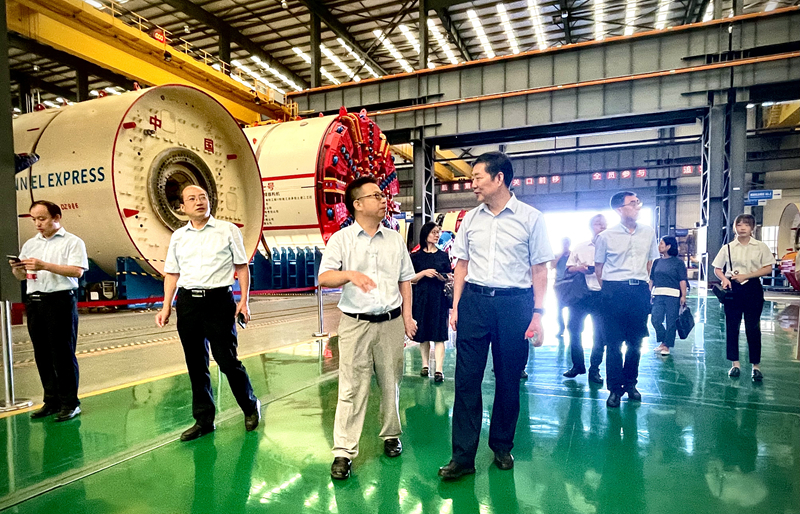 焦胜军一行首先参观了铁建重工集团掘进机、盾构机、凿岩台车等生产总装车间,详细了解了公司主要产品平台的运行情况和相关工作岗位的能力要求。