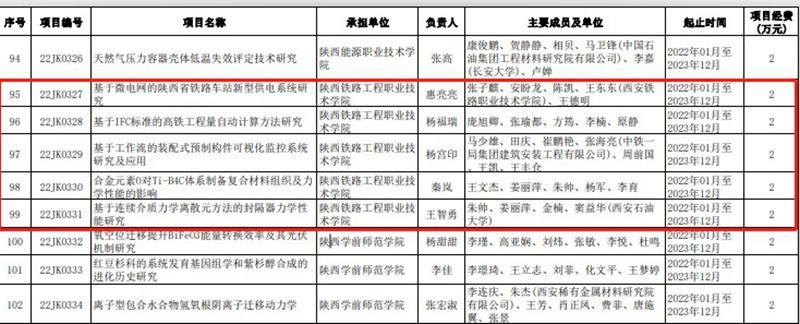 一直以来,学校高度重视科研项目申报和研究工作。此次立项科研项目经项目负责人申请、科技处组织专家评审,上报省教育厅审核等程序,体现了学校教师科研能力的平稳提升。学校将严格按照省教育厅要求,加强项目的日常管理工作,组织项目负责人认真签订陕西省教育厅科学研究计划项目责任书,并对项目合同书中的项目成果形式及相关经济技术指标与项目申报书的一致性进行严格审查、把关。希望全校教师积极结合学校“双高”建设和学科建设目标,积极主动申报各级各类科研项目,同时注重成果转化,切实提高学校科研能力与水平,为高层次科研项目立项再创佳绩,为学校的长远发展做出更大贡献。(赵晓玉)
