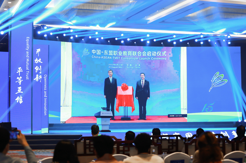 8月23日,中国教育部部长怀进鹏与中国教育国际交流协会会长刘利民在2022中国-东盟教育交流周开幕式上共同启动中国-东盟职业教育联合会,学校入选首批成员。