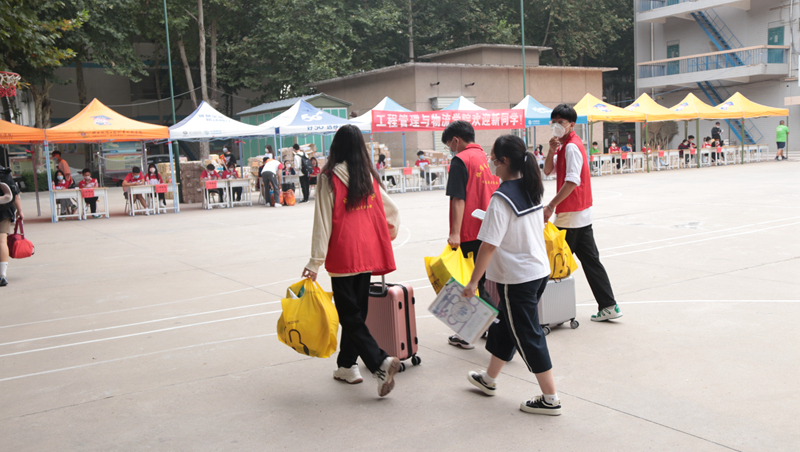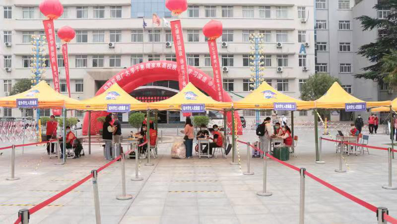 同时,为营造浓郁的迎新氛围,让学生感受到温暖,负责迎新的志愿者们尽职尽责、文明热情、将学校的人性化服务渗透到开学报到的每一个环节之中,展现了铁院人良好的精神风貌。学校专门组建了志愿服务队伍,200余名教工党员组成的党员先锋队,轮流在学校门禁处开展志愿服务工作,查验学生学工系统返校审批手续,维持入校秩序,同时引导校内口罩佩戴,协调对接交通卡口等。500余名学生志愿者深入到开学报到现场一线,他们身穿防护服或红色马甲、佩戴工作牌,引导新老学生积极配合疫情检测,帮助同学搬运行李、完成报到等流程。在渭南火车站、渭南西站、渭南北站、渭南客运中心设立接站点,安排专人专车对返校学生“点对点”接至校内,在渭南西、渭南东高速口、310国道进渭卡口安排教师负责对接工作人员。餐饮中心为同学们准备了可口的饭菜供应,并引导有序错时就餐。后勤保障处提前对学校各个环节进行了消毒清洁工作。安全保卫处与渭南市交警大队协调做好校外车辆疏导工作,提前协调交警规划两校区校门口外部车辆停放,给新生入学护航。