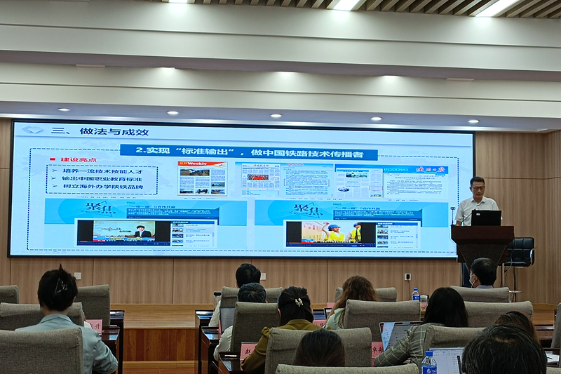 培训班上,蒋平江作《传播中国铁路技术,服务中国铁路“走出去”战略——陕铁院肯尼亚鲁班工坊建设与实践》主题报告。他从背景与使命、认识与思考、做法与成效、动力和愿景等四个方面介绍了我校肯尼亚鲁班工坊建设与实践经验,向参培人员分享了学校跨境办学的思考探索与详细做法,输出推广了鲁班工坊建设的陕铁理念与陕铁方案,受到参培人员的高度认可。