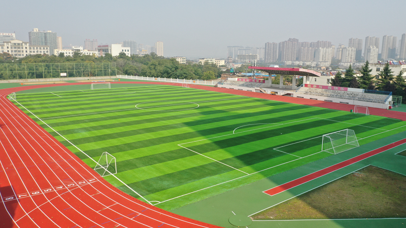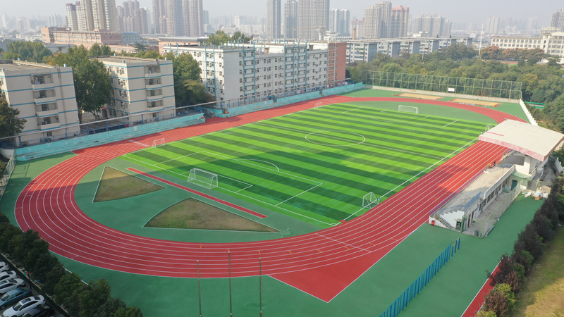 学校临渭校区运动场始建于2007年,占地面积约18300m2,其中预制型塑胶跑道及副场区塑胶面积约10240m2,足球场区人造草坪面积约7670 m2。因原田径场修建年限较长,日常活动使用率高,塑胶跑道出现了裂缝等现象,影响师生锻炼和正常体育教学。对此,学校领导高度重视,对田径场进行调研,到现场多次查看,广泛征求意见,最终拟定实施方案后启动田径场翻修改造。操场于7月中旬开始施工,跑道结构采用混合型塑胶面层,厚度13mm,足球场采用人造规格为50mm人造草坪。田径场旧貌换新颜,场地平整美观、划线清晰规范,不仅为学校体育教学和师生运动提供了良好的条件,还进一步丰富了师生的业余生活,优化了育人环境。