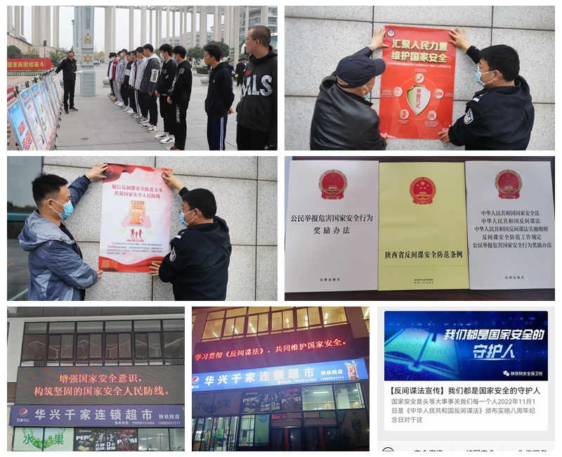 活动期间,学校通过摆放宣传展板、召开主题班会、推送专题微信、投屏LED显示屏、张贴海报、发放宣传资料等多种形式,主要对《中华人民共和国反间谍法》《反间谍安全防范工作规定》《公民举报危害国家安全行为奖励办法》《陕西省反间谍安全防范条例》等法规、条例进行集中宣传,重点突出《公民举报危害国家安全行为奖励办法》的宣传力度,营造了“国家安全,人人有责,人人可为”的良好氛围。