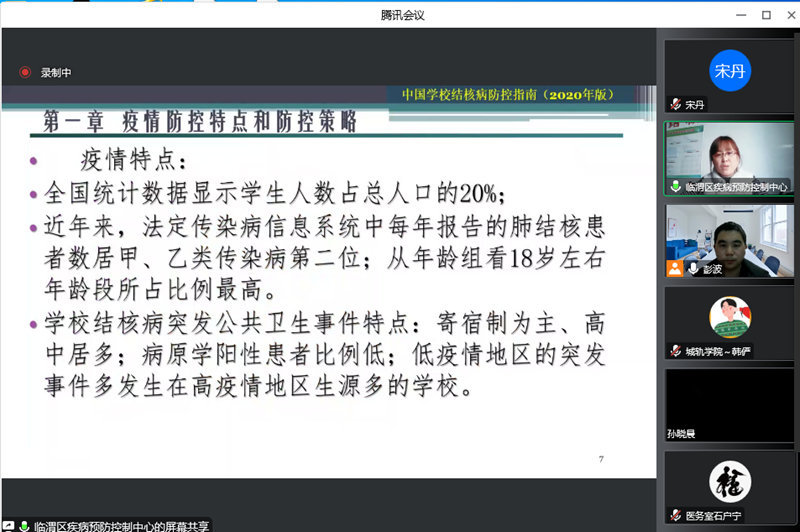 为进一步加强学校结核病防治工作,11月17日下午,学校采用线上线下相结合的方式组织召开结核病防治技术培训会。渭南市临渭区疾控中心结防科郝蕾应邀开展培训,学校全体校医护士、各二级学院的辅导员参加培训。