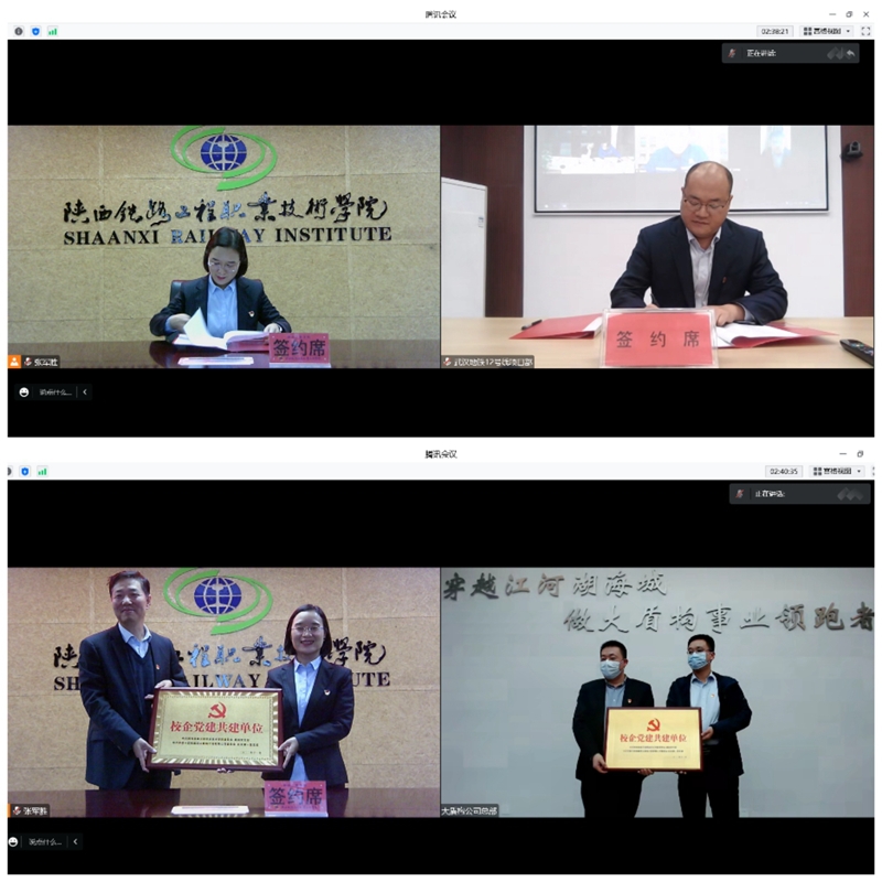 在双方人员的共同见证下,毛红梅与大盾构公司王举举分别代表所在支部,线上同步签订了校企党建共建合作协议书。校企双方同步进行“校企党建共建单位”云授牌。