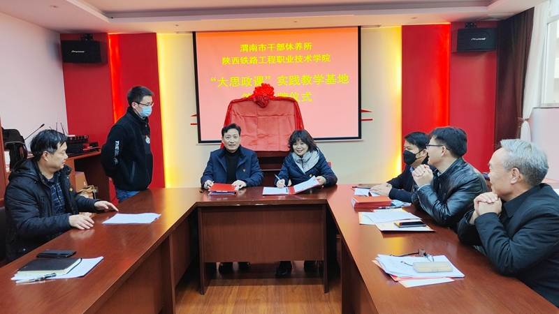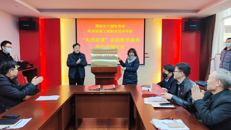 习近平总书记说,“大思政课”我们要善用之,一定要跟现实结合起来。学校马克思主义学院长期注重“大思政课”资源开发和课程建设,双方经前期沟通交流,决定发挥各自优势,搭建合作育人平台。11月30日下午,学校与渭南市干部休养所共建“大思政课”实践教育基地挂牌仪式在市老干所老党员之家召开。学校工会主席车绪武、马克思主义学院院长李新萍、马克思主义学院副院长孟红松,渭南市干部休养所所长张永清,副所长魏建昌,老党员工作室主任、志愿服务队队长王伟志,马院办公室主任李启康及全体思政课教师参加共建仪式,仪式由魏建昌主持。