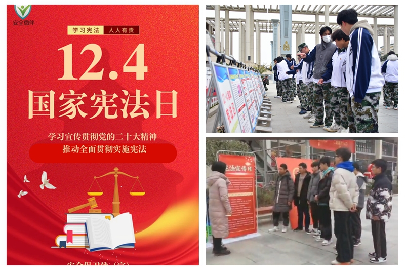 ——开展“宪法诵读和宪法宣誓”活动。11月30日下午,学校安保处老师组织学生在高新校区火车头广场集体诵读《宪法》第一条、第二条、第五条、第三十三条、第四十六条、第五十一条至第五十四条内容。诵读完毕后,在安保处老师的带领下,大家举起紧握的右拳进行了宪法宣誓:“忠于中华人民共和国宪法,学习宪法知识,维护宪法权威,热爱祖国、热爱人民、热爱中国共产党,努力学习、自信自强,为建设富强、民主、文明、和谐的社会主义国家努力奋斗。”宣誓,是一种承诺,更是一种警示,有助于学生从内心树立起忠于宪法和法律的理念,自觉接受宪法的教育和洗礼,长存对宪法的敬畏之心。