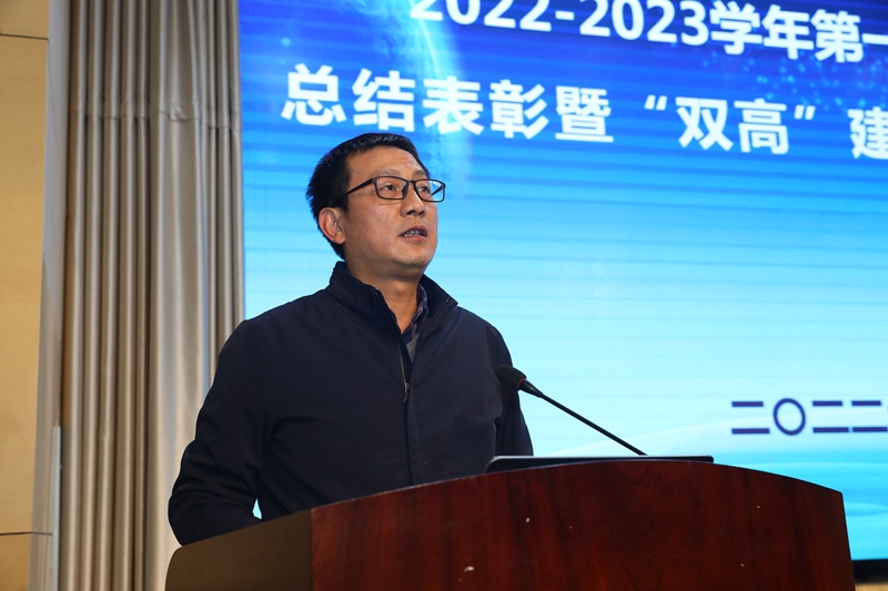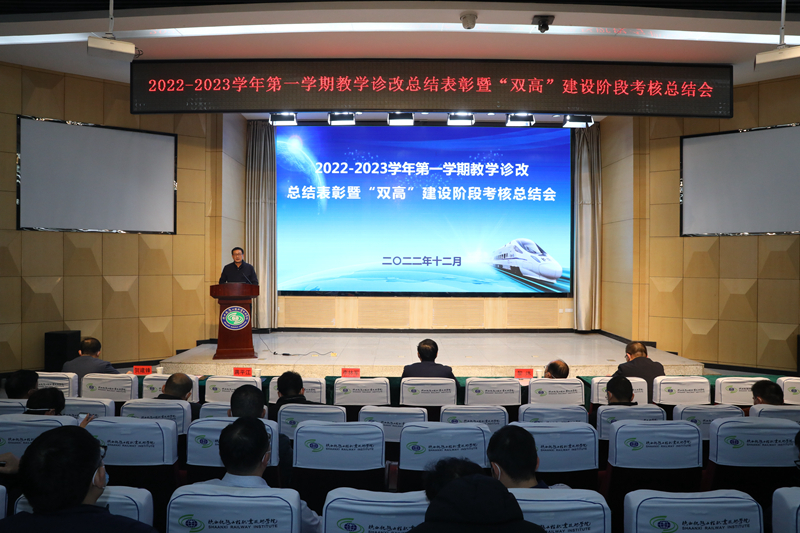 为进一步分析总结本学期前一阶段的教学运行和“双高”建设推进情况,查找工作中存在的问题和不足,不断改进提升工作质量,研判发展形势,促进学校发展,12月14日下午,学校在高新校区博爱厅召开2022-2023学年第一学期教学诊改总结表彰暨“双高”建设阶段考核总结会。学校党委书记焦胜军,党委副书记李林军,党委副书记、纪委书记黎炜,副校长蒋平江、张学钢、贺建锋,处科级干部、专兼职教师参加了会议。蒋平江主持会议。