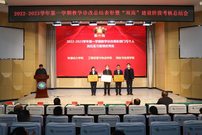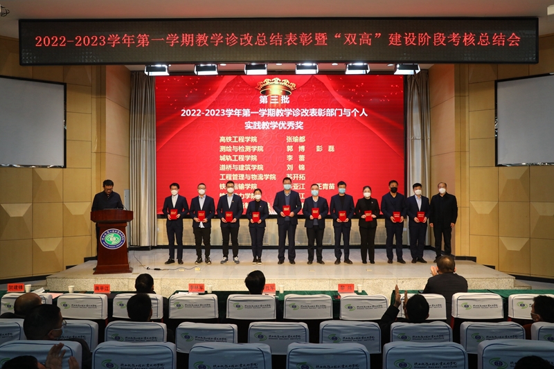 李林军副书记宣读了《关于表彰学校2022-2023学年第一学期期中教学诊断与改进优秀项目的决定》。大会对“岗位实习管理优秀奖”“教研活动优秀奖”“实践教学优秀奖”等三个奖项的获奖集体及个人进行了表彰,与会领导为获奖代表进行了颁奖。