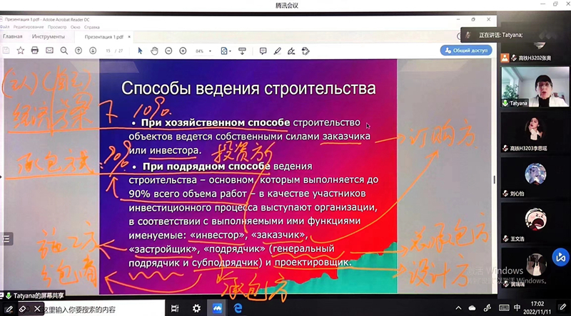 另外,学校萨马拉交通学院为每门外教课程配备了线下随堂助教。助教主要由学校相关专业课教师及俄语教师担任,协助外教老师做好学生课前预习、课后复习、课堂的答疑讲解,辅助学生更加有效地完成学习任务,帮助学生尽快适应外教线上专业课程的教学模式,保障外教课程顺利进行,确保教学质量。
