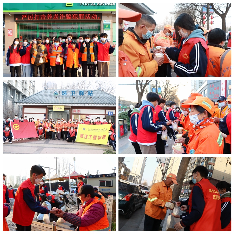 3月5日,高铁工程学院团总支组织开展爱心早餐志愿服务活动。青年学生们走上街头,走近可爱的环卫工人,为他们送上温暖早餐,帮助他们共同参与到创卫工作中。学生们的真诚、勤劳、善良温暖了早春的清晨。无论时代如何变迁,雷锋精神永不过时!