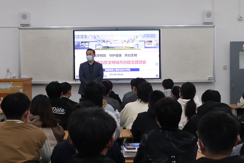 3月6日晚,铁道运输学院召开“传染病防治暨文明城市创建”主题班会,副校长贺建锋及有关部门处级干部进班宣讲。