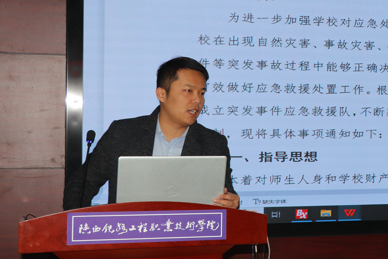 李启康科长宣读《关于成立学校应急救援队的通知》文件