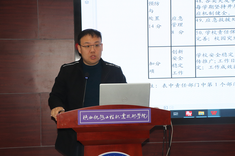 会上,学校党办副主任李博安排了迎接省级“平安校园”评定工作近期任务;安保处治安科科长吕潇汇报了 “平安校园”安保处负责指标任务资料收集情况;安保处综合科科长李启康汇报了安保处起草的《关于成立学校应急救援队的通知》(征求意见稿)。