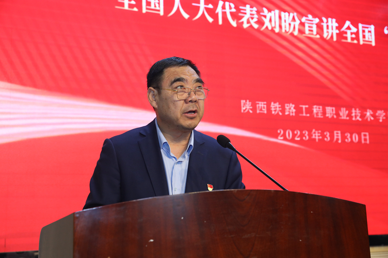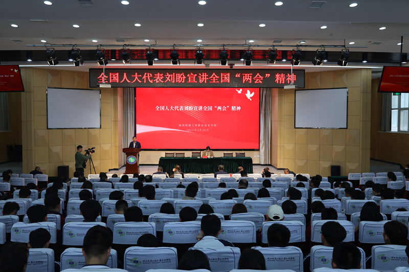 3月30日下午,学校在高新校区博爱厅举行全国两会精神宣讲报告会,邀请到全国人大代表、全国五一劳动奖章获得者、渭南鼎信创新智造科技有限公司高级培训教师刘盼来校作全国两会精神宣讲报告,校领导、处科级干部聆听了报告会,党委副书记李林军主持报告会。