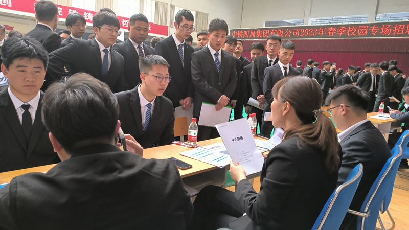 本次招聘会吸引来中铁四局集团一公司、二公司、三建公司、四公司、五公司、六公司、七分公司、钢结构公司、市政分公司、电气化公司、物资工贸公司、城轨分公司、工程技术公司、安装公司、南京分公司等16家子分公司来校选聘英才。