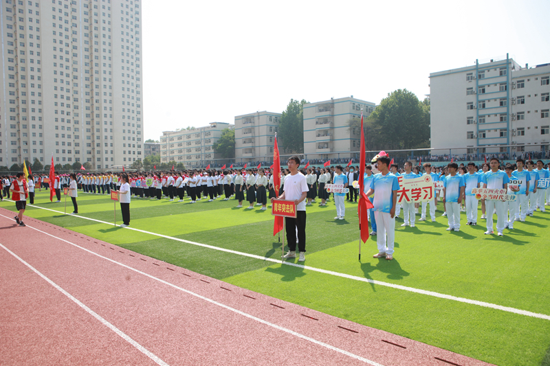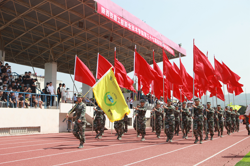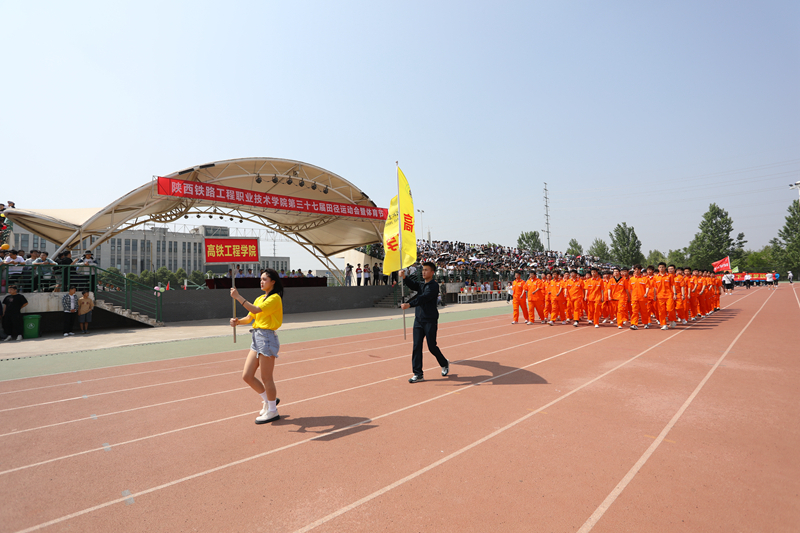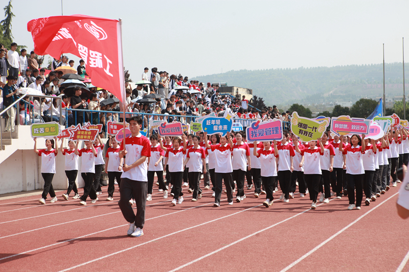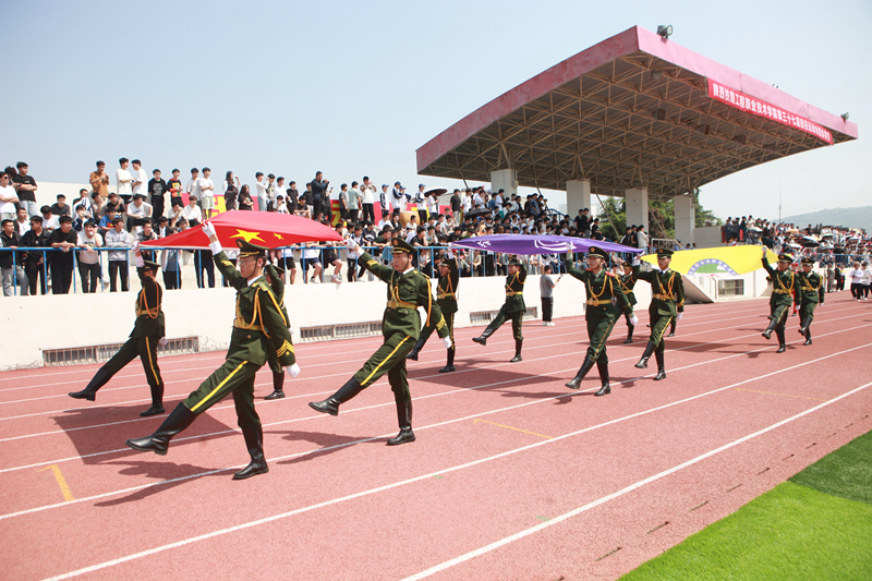 入场式中,伴着激昂的旋律,护旗队、军乐团、红旗队、裁判员、青年突击队、各学院方阵、各分会教工方阵列整齐、口号嘹亮、精神抖擞地进入会场,充分展现了学校师生拼搏奋发、昂扬向上的精神风貌。