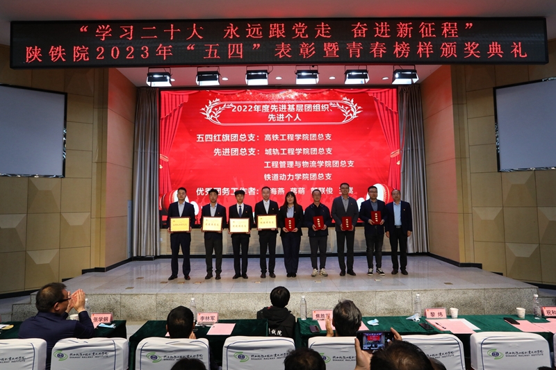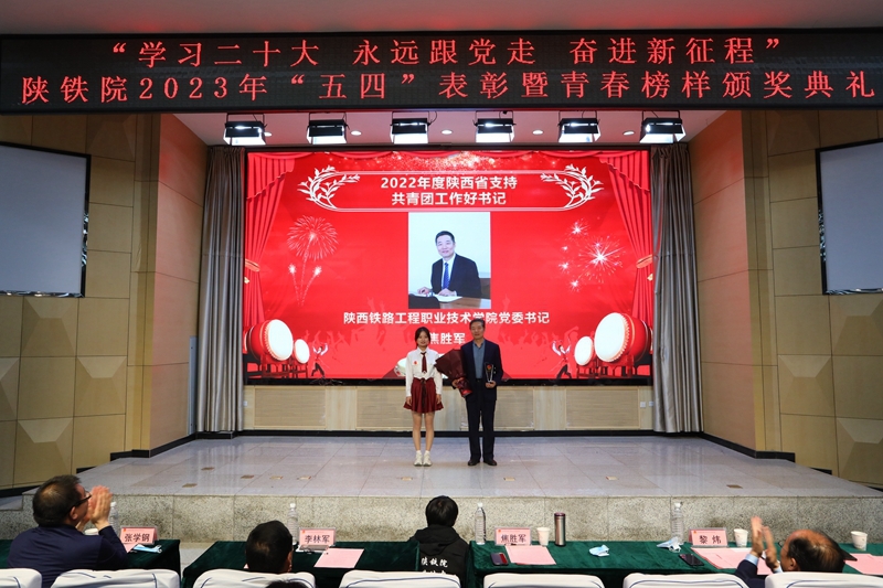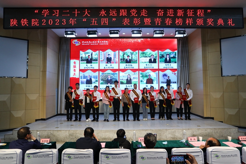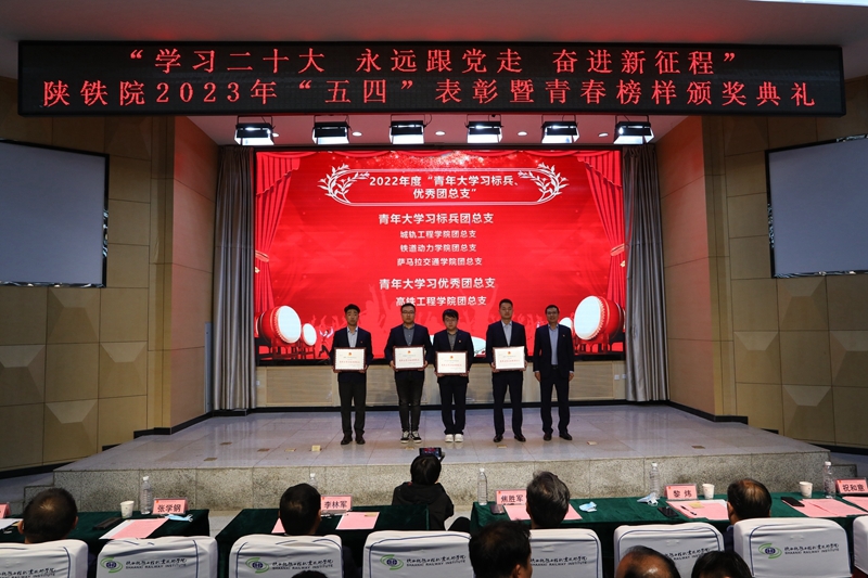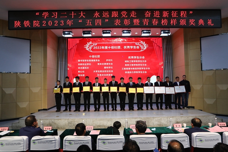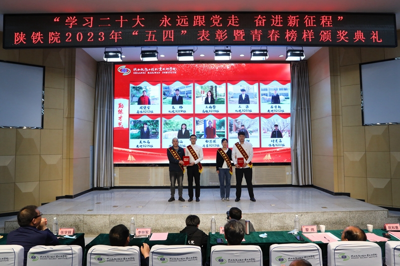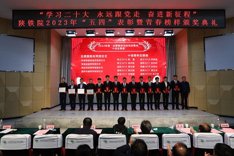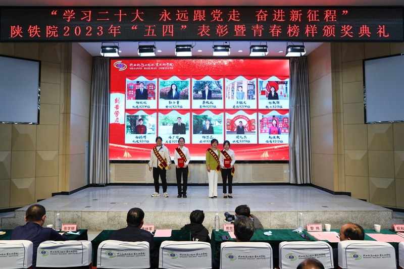 典礼上,李林军、黎炜、刘明学分别宣读表彰文件。现场对陕西省支持共青团工作好书记、第十三届“挑战杯”中国大学生创业计划竞赛银奖、第十一届“挑战杯”陕汽集团陕西省大学生创业计划竞赛金银铜奖、陕铁院支持共青团工作基层好书记、青年五四奖章、先进基层团组织和先进个人、优秀学生组织、志愿服务先进集体、十佳志愿者、青年大学习先进集体等获奖个人和集体进行颁奖表彰。