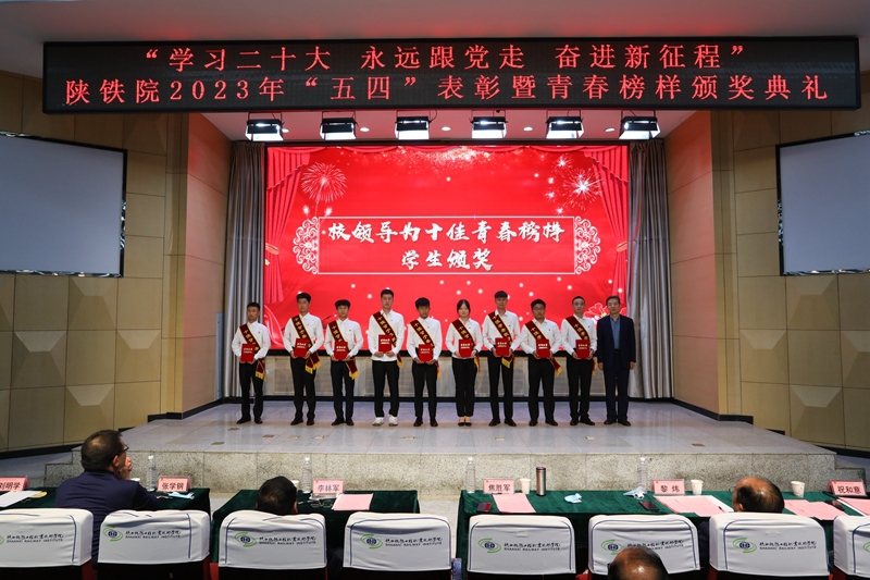 焦胜军发表了讲话。他代表学校党委,向受表彰的先进集体和优秀个人表示祝贺,并提出三点希望:一要坚定理想信念、弘扬爱国精神;二要砥砺前行、不负韶华、向上向善,坚守真善美的价值追求;三要脚踏实地、增长才干、勇做新时代先锋力量。最后,他寄语学校青年学子:希望广大青年学子要牢记习近平总书记对新时代中国青年的嘱托,要树立远大理想,要热爱伟大祖国,要担当时代责任,要勇于砥砺奋斗,要练就过硬本领,要锤炼品德修为。不断提升自身素质,不辜负党的期望、人民期待、民族重托,不辜负我们这个伟大时代,让青春在为祖国、为人民、为民族、为人类的奉献中焕发更加绚丽的光彩,用勤奋和汗水书写无愧于韶华、无愧于青春、无愧于时代的人生华章,以优异成绩向建校50周年献礼,以铁院青年的担当为强国建设、民族复兴贡献新的力量!