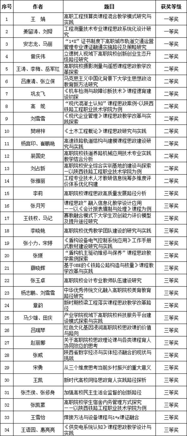 陕西省职业技术教育学会2022年度优秀职教论文获奖情况一览表