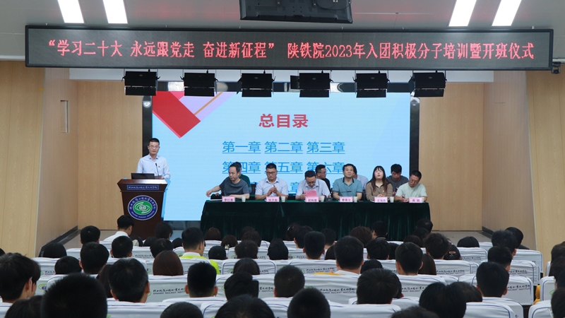 5月18日下午,“学习二十大 永远跟党走 奋进新征程”陕铁院2023年入团积极分子培训暨开班仪式在高新校区诚信厅举办,副校长祝和意、学工部部长曹喜龙、团委书记姚天魁、团委专兼职团干、各学院团总支书记、副书记以及2023年入团积极分子参加开班仪式。