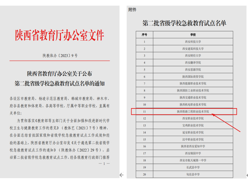 近日,陕西省教育厅公布了省级学校急救教育试点单位名单,学校位列其中。