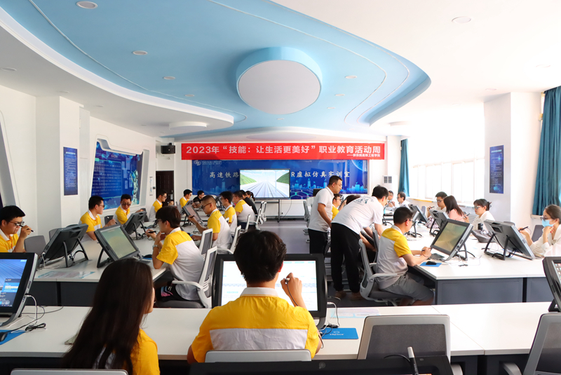 企业两位高工借助高铁施工项目虚拟仿真教学软件,就高铁线桥隧结构认知、施工虚拟仿真、工程项目管理、施工仿真综合实训系统四部分为师生现场培训、演练。同时,讲解了虚拟仿真技术的发展现状与发展方向,针对虚拟仿真软件在企业施工中的应用进行了详细说明。