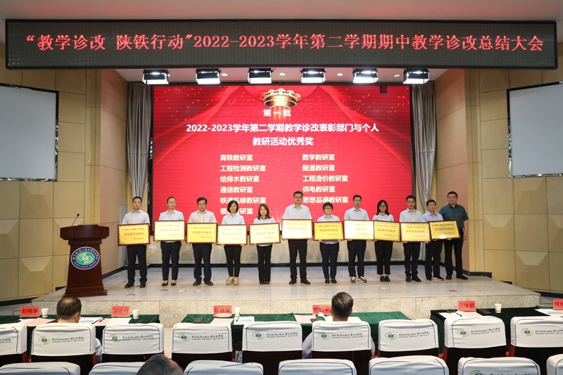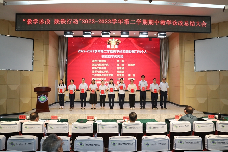 学校副校长贺建锋宣读《关于表彰学校2022-2023学年第二学期期中教学诊断与改进优秀项目的决定》表彰文件。大会对“教研活动优秀奖”“岗位实习管理优秀奖”“实践教学优秀奖”等三个奖项的获奖集体及个人进行了表彰。
