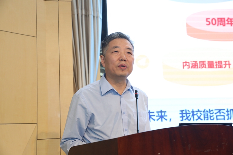 最后,学校党委书记焦胜军以“踔厉奋发,勇毅前行,推动学校各项事业高质量发展”为题,分析了当前学校发展形势和未来发展方向,围绕“双高”建设、干部队伍、师资队伍、教学改革、学生管理、学生就业和产教融合等重点工作进行了安排部署,号召全体教师紧抓“职业教育大有可为、大有作为”有利时机,坚定信心、开拓创新,努力在变局中开新局,不断提升学校的整体教学水平,以更加饱满的热情、更加昂扬的斗志、更加务实的作风,共同谱写学校高质量发展新篇章!(卫颖颖 贺凯盈/文 杨光/图)