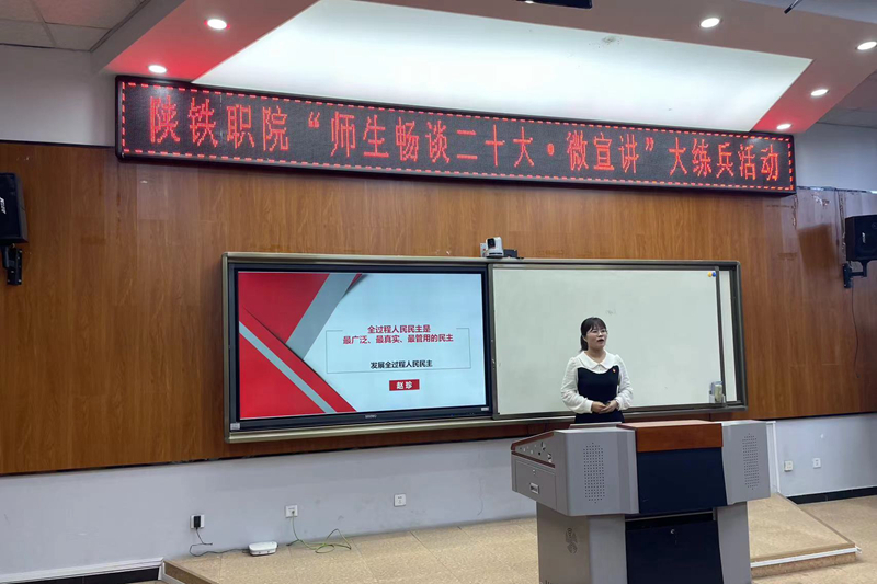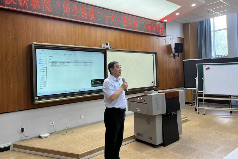 6月8日下午,由党委宣传部、教务处和马克思主义学院联合举办的“师生畅谈二十大·微宣讲”大练兵活动在高新校区教育教学培训室举办。此次活动分教师和学生两组进行,共有16位思政教师、3位学生参赛,学校党委副书记李林军出席活动,邀请到西铁职院马克思主义学院院长景延鹏,教育教学总督导杨云峰,铁路文化研究中心主任车绪武,教学督导李国强,教学督导艾民江,教学督导赤保民,党政办主任、党委宣传部部长王云波,教务处副处长宋德军,铁道运输学院副院长蔡昱担任评委,活动由学校马克思主义学院副院长孟红松主持。