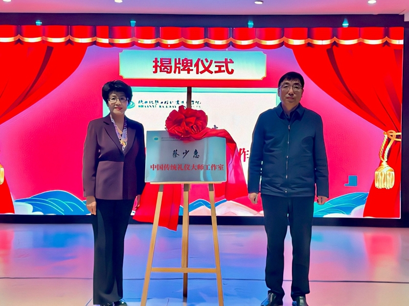 随后,韩小卫为蔡少惠教授颁发聘书,并与蔡教授共同为工作室揭牌。仪式后,韩小卫发表讲话。他指出,传统礼仪是中华优秀传统文化传承的重要内容,更是职业教育培养高素质人才的精神养分。蔡少惠教授作为国内传统礼仪领域的权威专家,深耕行业数十载,兼具深厚的学术造诣与丰富的实践经验。大师工作室的成立,既是学校落实“文化育人” 理念的重要举措,更是搭建高水平师资培养、特色人才培育平台的关键突破,将为学校礼仪教学改革、校园文化建设注入强劲动力。