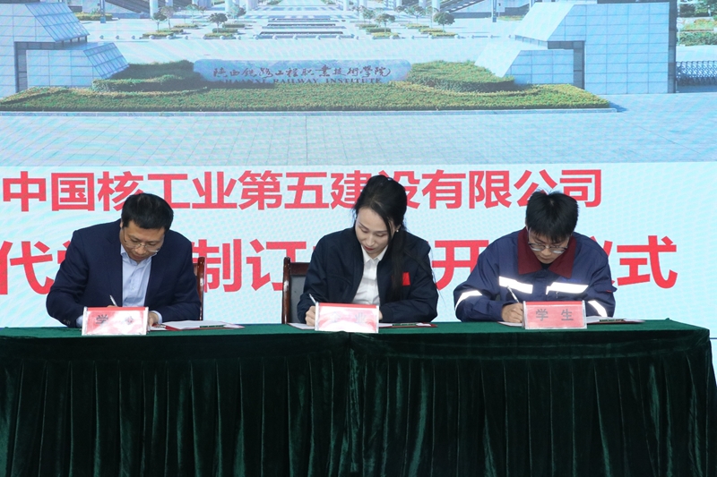 11月3日上午,学校与中国核工业第五建设有限公司在高新校区诚信厅举行现代学徒制订单班开班仪式。校企双方领导、相关部门负责人、企业导师、校内班主任及订单班全体学生共同参加了此次活动。仪式由学校副校长刘明学主持。