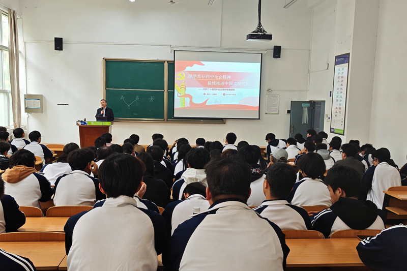 贺建锋的讲授深入浅出,案例丰富且详实,不仅让同学们对党的二十届四中全会精神和中国式现代化有了更加深入的认识,而且激发了大家的使命担当。同学们表示,今后要努力学习专业知识,提升技能本领,将个人理想融入国家发展大局,以青春力量为接续推进中国式现代化贡献力量。(闫靖博)