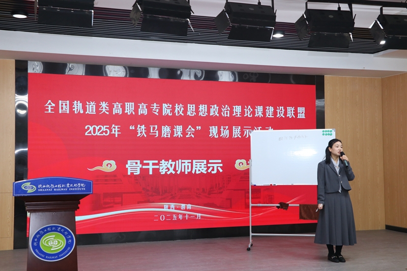 开幕式上,全国轨道类高职高专院校思想政治理论课建设联盟会长、学校党委书记焦胜军致辞,介绍了学校“铁色铸魂”思政工作体系及育人成果。陕西师范大学阎树群教授作专题讲座,深入阐释习近平新时代中国特色社会主义思想。教学展示环节分骨干教师组和青年教师组,20名选手融入轨道交通行业案例,以板书展示、沉浸式课件教学等形式展现教学风采,专家评委针对性提出优化建议。